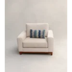 Decorative Cushion: A single cushion with a geometric design in shades of blue and gray adds visual depth and a touch of vibrancy.