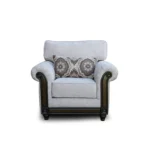 Frame: Made of solid wood with dark decorative details on the arms and base.
