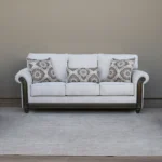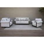 This three-piece living room set features a classic and elegant design that combines comfort and luxury. It includes a three-seater sofa, a two-seater sofa, and an armchair, all perfectly proportioned in terms of size and detail. The design features smooth lines and wraparound arms, creating a warm and inviting atmosphere.