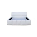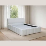Full upholstery in light-colored fabric (white/ivory) that reflects light and creates a sense of cleanliness and tranquility.