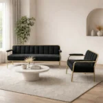 General Description: A modern sofa set with a calm and elegant design, combining simplicity and luxury, reflecting refined taste and suitable for modern spaces, living rooms, and reception areas.